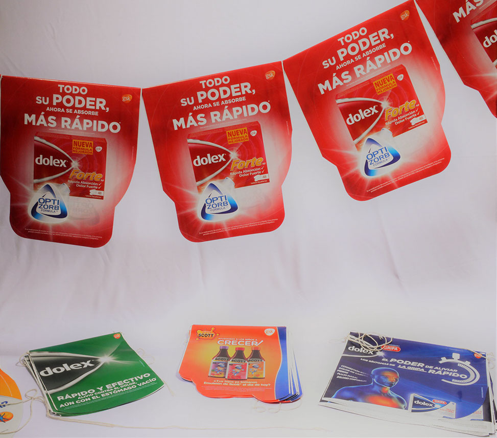 Bolsas comerciales con manijas especiales, Banderines y Faldones publicitarios, cenefas y cintas publicitarias, golpeadores inflables, inflables para eventos.